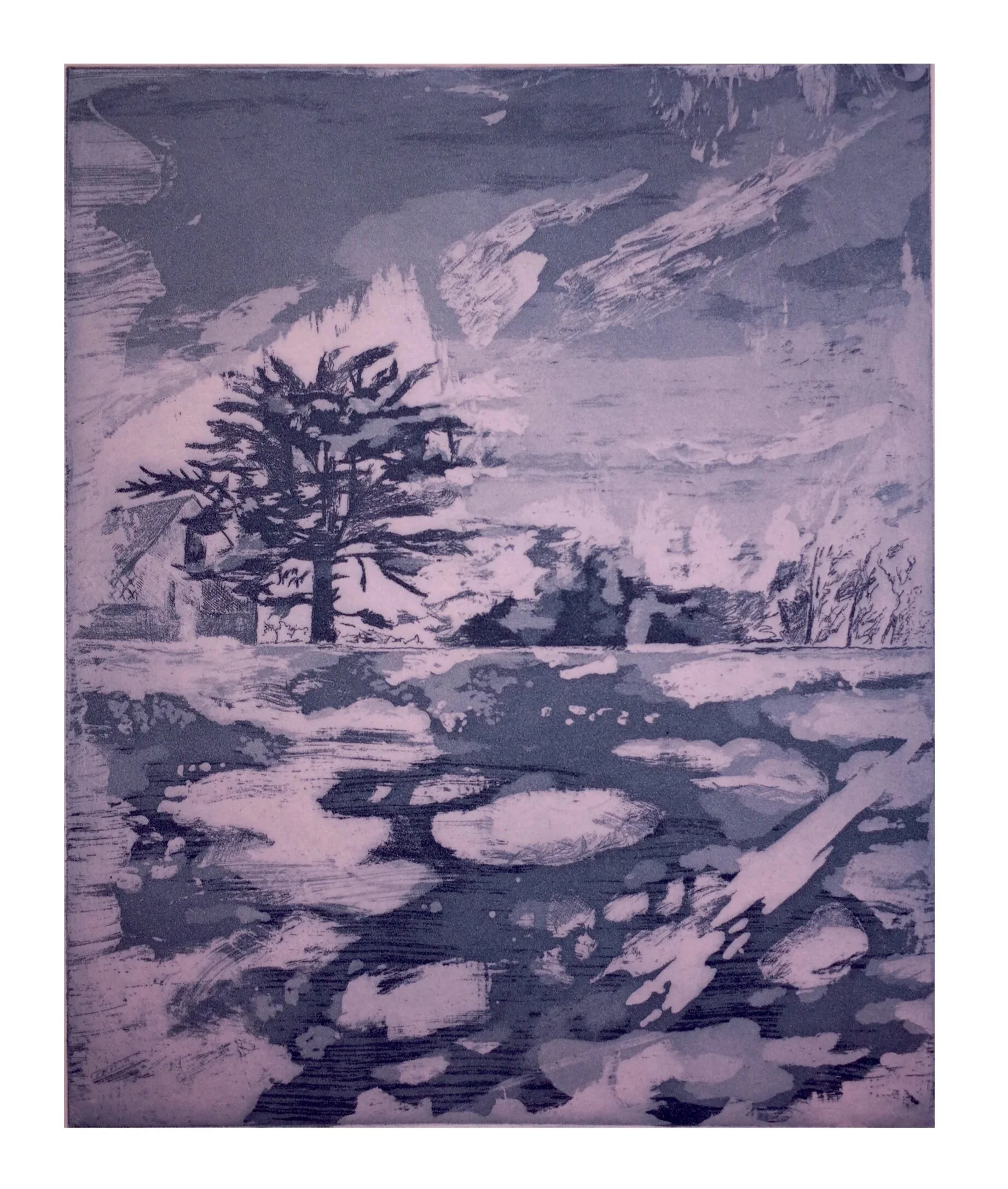 Cloudy day - 2020 - aquatint, hard ground, dry point etched on copper - 25 x 20 cm